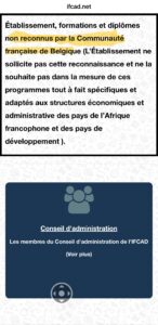 بعد دراسة معمقة، اعتبرت الوزارة أن IFCAD لا تستوفي شروط مؤسسة تعليم عالٍ. وبالتالي، أي تسجيل صادر عنها لا يُخوّل الحق في الإقامة.
